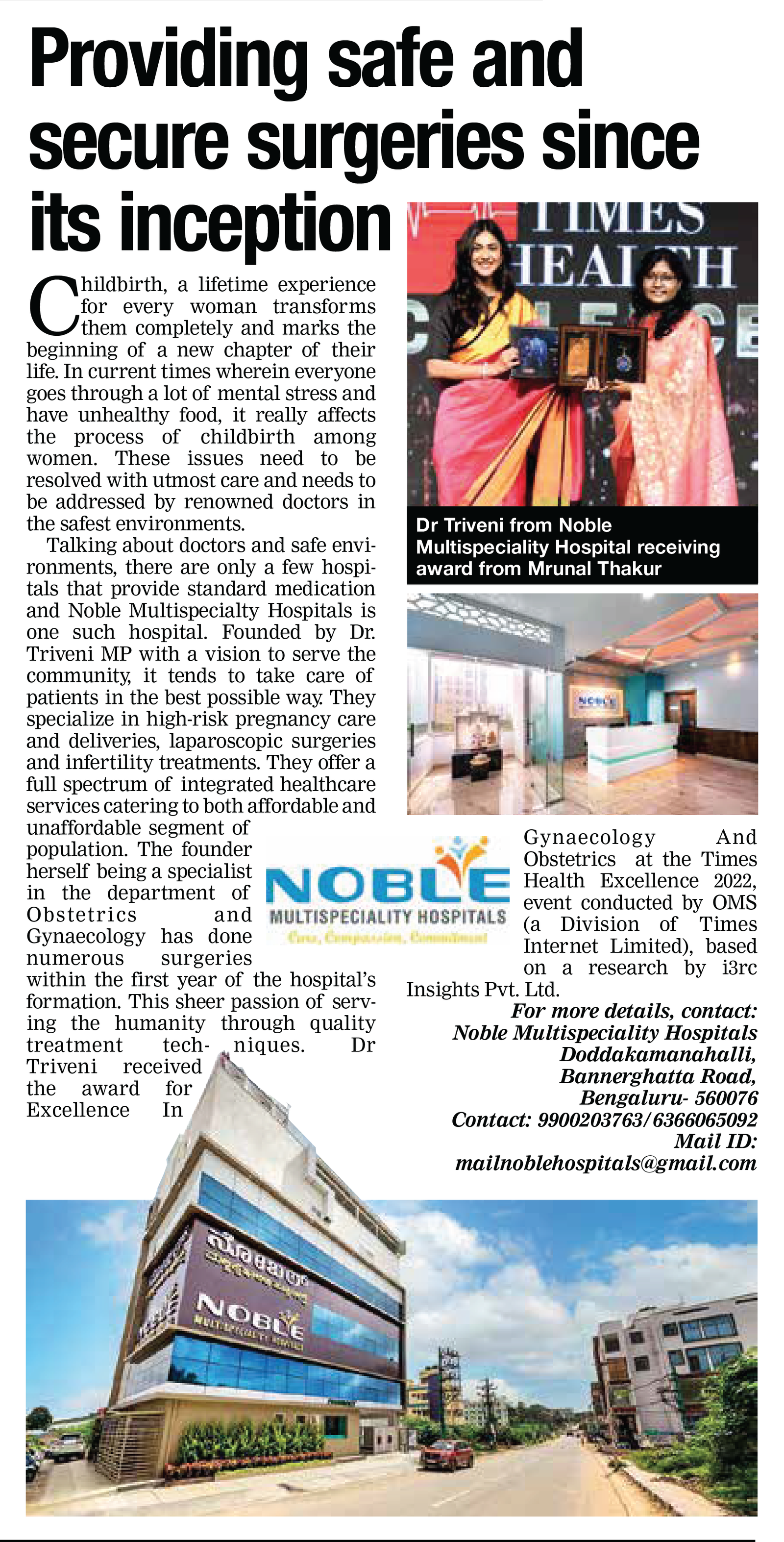 I want to express my gratitude to Dr. Triveni for all of her help and support over the past nine months. We went to Cloudnine ECity during our last pregnancy, where we lost our baby in the sixth month and had the bad experience with the doctors and nurses. My wife got pregnant again after a year, we had to conduct research and select the best hospital and doctor. To get an opinion, we went to a lot of hospitals. At that point, we decide on Noble Hospital and Dr. Triveni. She is a very calm, collected, knowledgeable, and kind that I have never seen with any other doctors till now. She was so humble and caring on each visit. She explains every step of the process with humility and transparency. Her exceptional decision-making skills rescued our baby. She stood with us and gave us comfort and ease at every turn in our difficult circumstances. She created a lot of confidence with us throughout the wonderful journey and that goes on... I strongly recommend each couple to go to Dr.Triveni. She is the best. I would like to express my gratitude to all the duty doctors, nurses and reception for their support and care.
